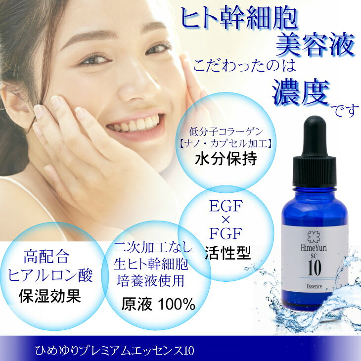 この ひめゆり SC プレミアムエッセンスシリーズは「ヒト幹細胞培養液」の原液(二次加工していないもの)を成分中の10%配合。