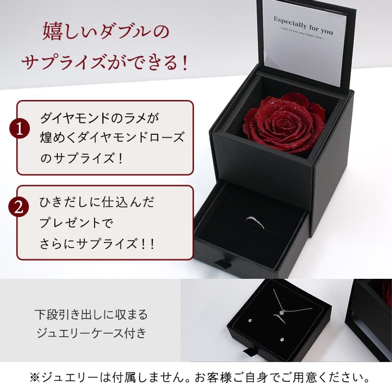 ※ジュエリーボックスはダイヤモンドローズの下段に入れた状態でお届けします。
