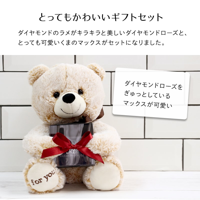 詳細はこちら >> ダイヤモンドローズ-M- クマのぬいぐるみギフトセット ダイヤモンドローズをを抱えたくまのぬいぐるみ「マックス」が超可愛い ※くまちゃんの表情は、みんなそれぞれの個性があります。