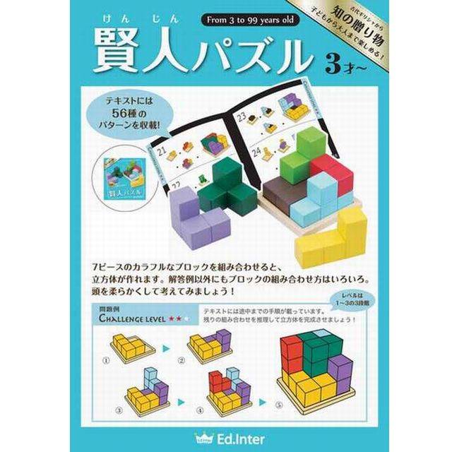 商品詳細 対象年齢 3歳〜99歳 内容 ブロック×7 木製プレート×1 テキストブック×1 企画デザイン エド・インター 日本 生産国 中国賢人パズル 7つのブロックを組み合わせて 立方体を作り上げる賢人パズル。