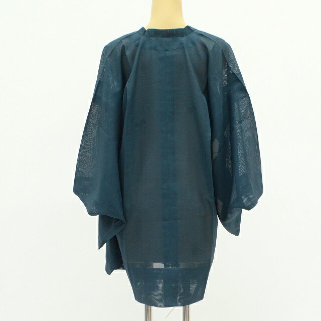 説明 青みがかった緑色に植物と水文様が施された道行コートです。