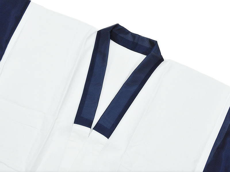 ■素材 : 身頃/綿100% 袖地・掛衿/ポリエステル100% ■半衿と袖の色目 : 紺 ■サイズ : 肩からの身丈/約80cm 袖丈/約49cm 裄/約73cm ■ : 日本製女性用に比較的簡単に着られる2部式の長襦袢があるように、男物の着物をお召しになる時に半襦袢を着て、長襦袢代わりにしてしまうのも、気楽に着物を楽しむ一つの方法です。